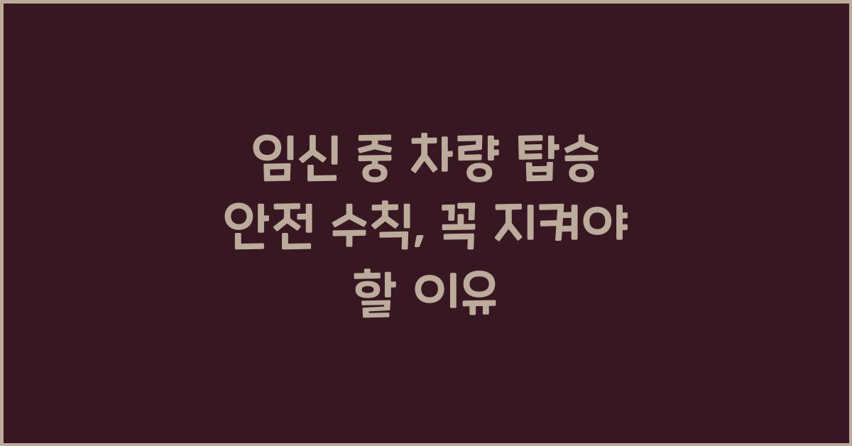 🚗 임신 중 차량 탑승 안전 수칙의 중요성임신이라는 특별한 시기를 맞이하면서, 많은 여성들이 삶의 여러 측면에서 변화와 적응을 겪게 됩니다. 특히 차량 탑승은 일상생활의 큰 부분을 차지하는데, 이때 임신 중 차량 탑승 안전 수칙을 준수하는 것이 필수적입니다. 이 수칙들은 단순한 규칙이 아니라, 엄마와 태아의 안전을 위해 반드시 지켜야 할 필수 조건입니다. 내 경험상, 차량에서 느끼는 불안감은 그 어느 때보다도 커지곤 합니다. 안전한 운전을 위해 어떤 수칙이 존재하는지 알아보겠습니다.임신 중 차량 탑승 안전 수칙 더 알아보기첫째, 차량 탑승 시 반드시 안전벨트를 착용해야 합니다. 안전벨트는 사고 발생 시 부상을 최소화해주는 가장 기본적인 장치입니다. 그러나 임신 중에는 안전벨트를 착용하는 방법 또한 달라..